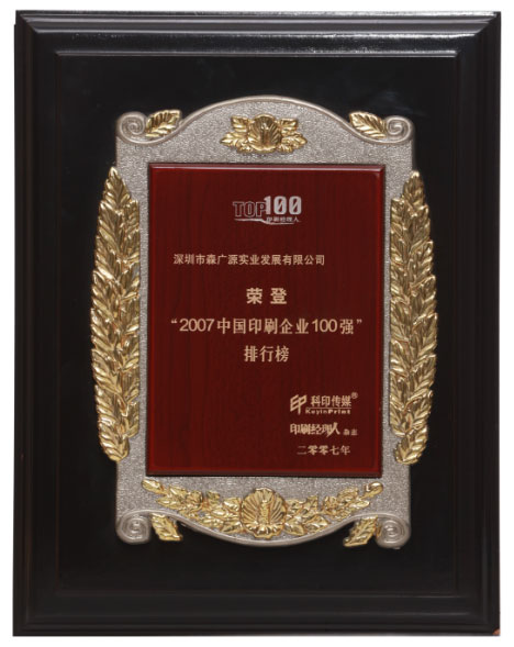 森廣源實業(yè)“2007中國印刷企業(yè)100強(qiáng)排行榜”