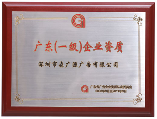 森廣源廣告榮獲“廣東省一級廣告企業(yè)”資質(zhì)