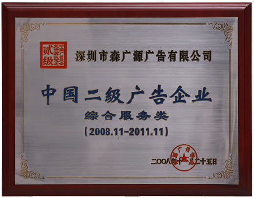 森廣源廣告榮獲"中國二級廣告企業(yè)"資質(zhì)