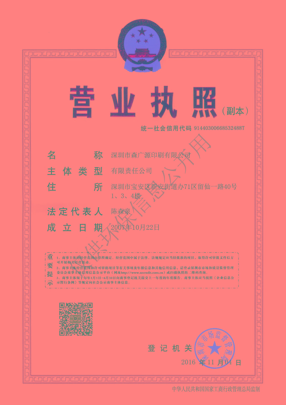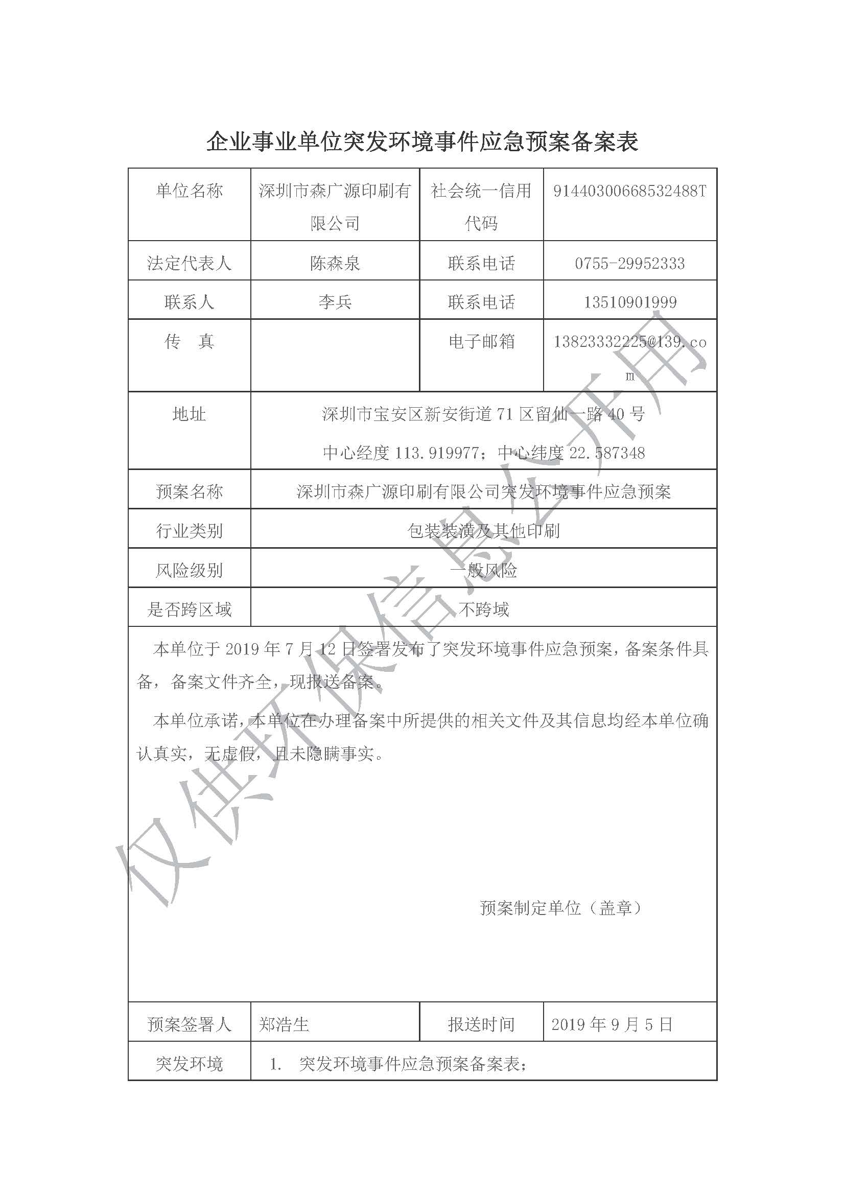 深圳市森廣源印刷有限公司環(huán)保信息公開